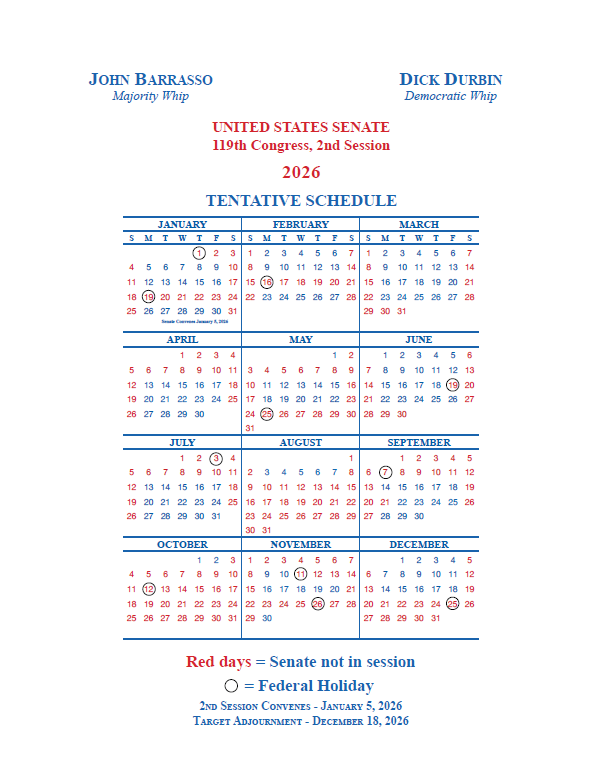 2026 Congressional Calendar